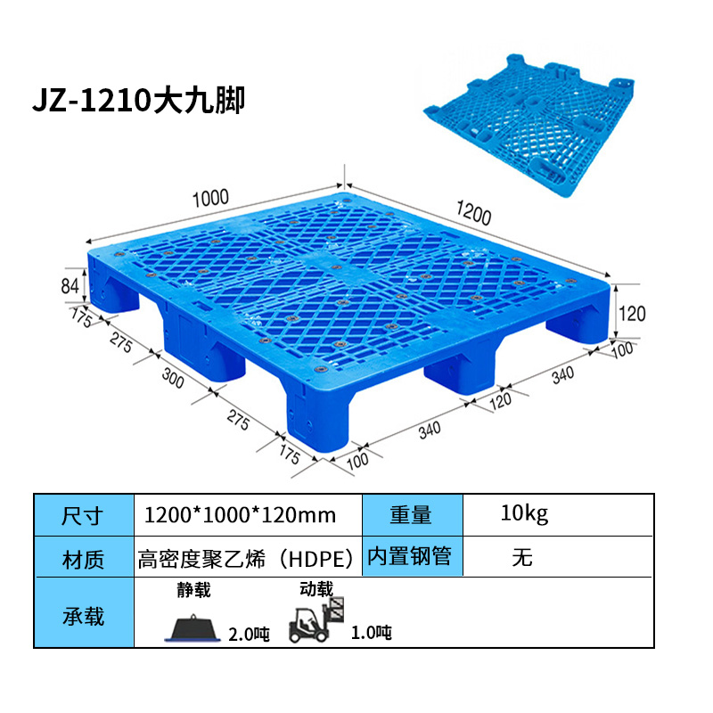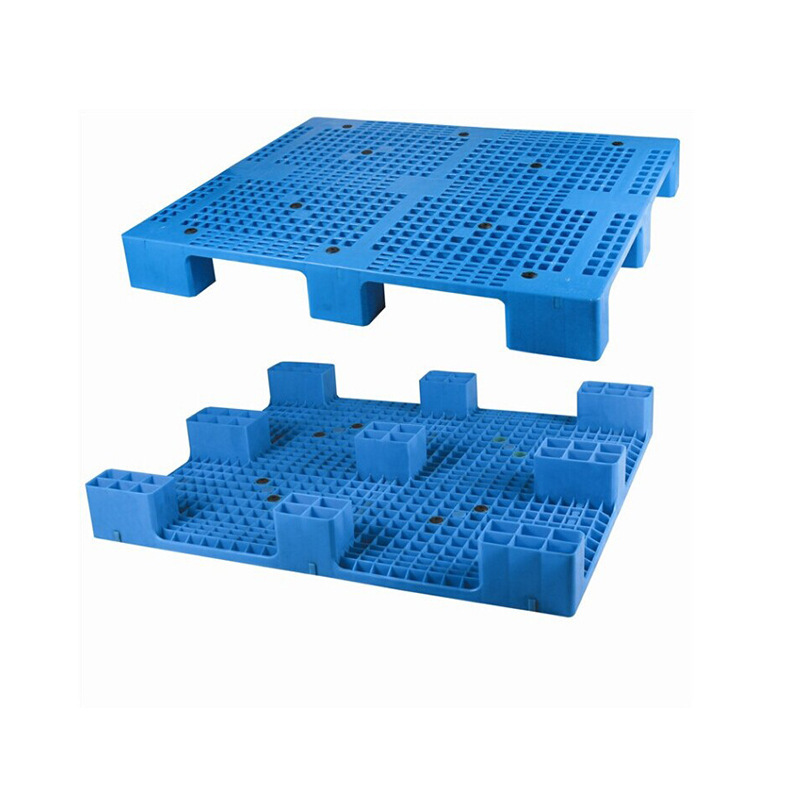 九腳網(wǎng)格塑料托盤的九腳網(wǎng)格托盤其底部是有‘九個腿’組成的,表面為‘網(wǎng)格’狀,行業(yè)為方便稱其為九腳網(wǎng)格托盤,九腳網(wǎng)格托盤大多型號的都為輕型的塑料托盤,不易用于上貨架或者較重貨物的周轉(zhuǎn)使用,大多情況下九腳網(wǎng)格塑料托盤都是用來倉庫貨物墊倉板防潮使用,對于輕型貨物的周轉(zhuǎn)也可