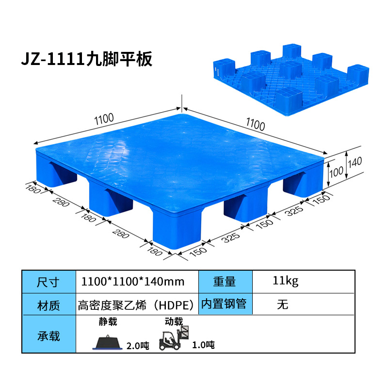 九腳平板塑料托盤底部為“九腳形”設(shè)計(jì)的塑料搬運(yùn)制品,其表面為平面,廣泛應(yīng)用于紡織廠、食品廠、醫(yī)藥廠等企業(yè)。這種托盤的設(shè)計(jì)特點(diǎn)包括輕質(zhì)、平穩(wěn)、美觀,無釘無刺,無毒無味,耐酸堿,不腐爛,不易被細(xì)菌繁殖,易清洗消毒,不助燃,無靜電,無火花,防暴,防滑溜,回收價(jià)值高。與鋼托盤、木托盤相比,九腳平板塑料托盤具有更好的環(huán)保性和安全性,能夠提升企業(yè)形象,提高物流效率。此外,九腳平板塑料托盤因其表面為平板狀,不易積累灰塵,方便清洗;受力均勻,對貨物有很好的保護(hù)作用;平面上均留有排氣小孔,具有良好的透氣性和防潮效果。這種托盤主要應(yīng)用于倉庫輕型貨物墊倉板、叉車周轉(zhuǎn)較輕貨物使用,不適合于上貨架或者轉(zhuǎn)載大重量的貨物?