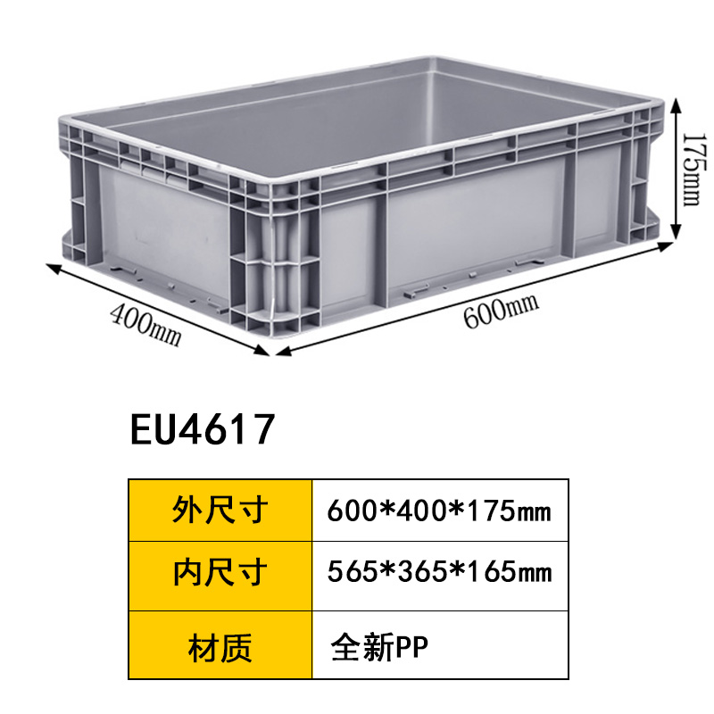 EU物流箱采用全新pp材質(zhì),采用先進(jìn)的生產(chǎn)工藝注塑而成,具有周轉(zhuǎn)方便,碼垛整齊,便于管理的特點(diǎn);規(guī)格多樣,常與塑料托盤及貨架等倉儲設(shè)備配合使用應(yīng)用廣泛, 主要應(yīng)用于物流運(yùn)輸、倉儲管理、生產(chǎn)加工、零部件存儲與運(yùn)輸、廢棄物處理及產(chǎn)品展示等多個(gè)領(lǐng)域